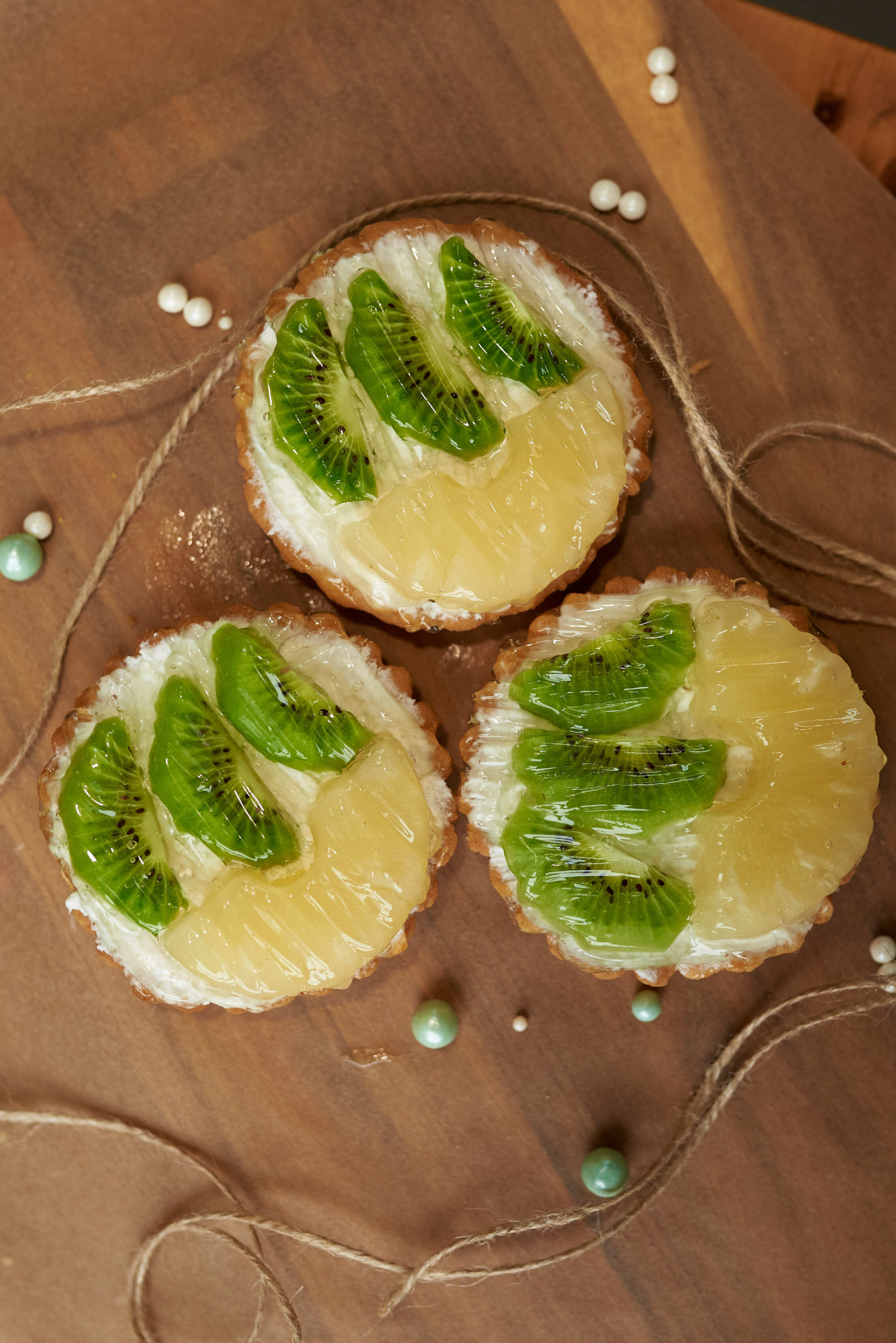 Состав: Песочная корзинка, творог, персик, киви, ананас.