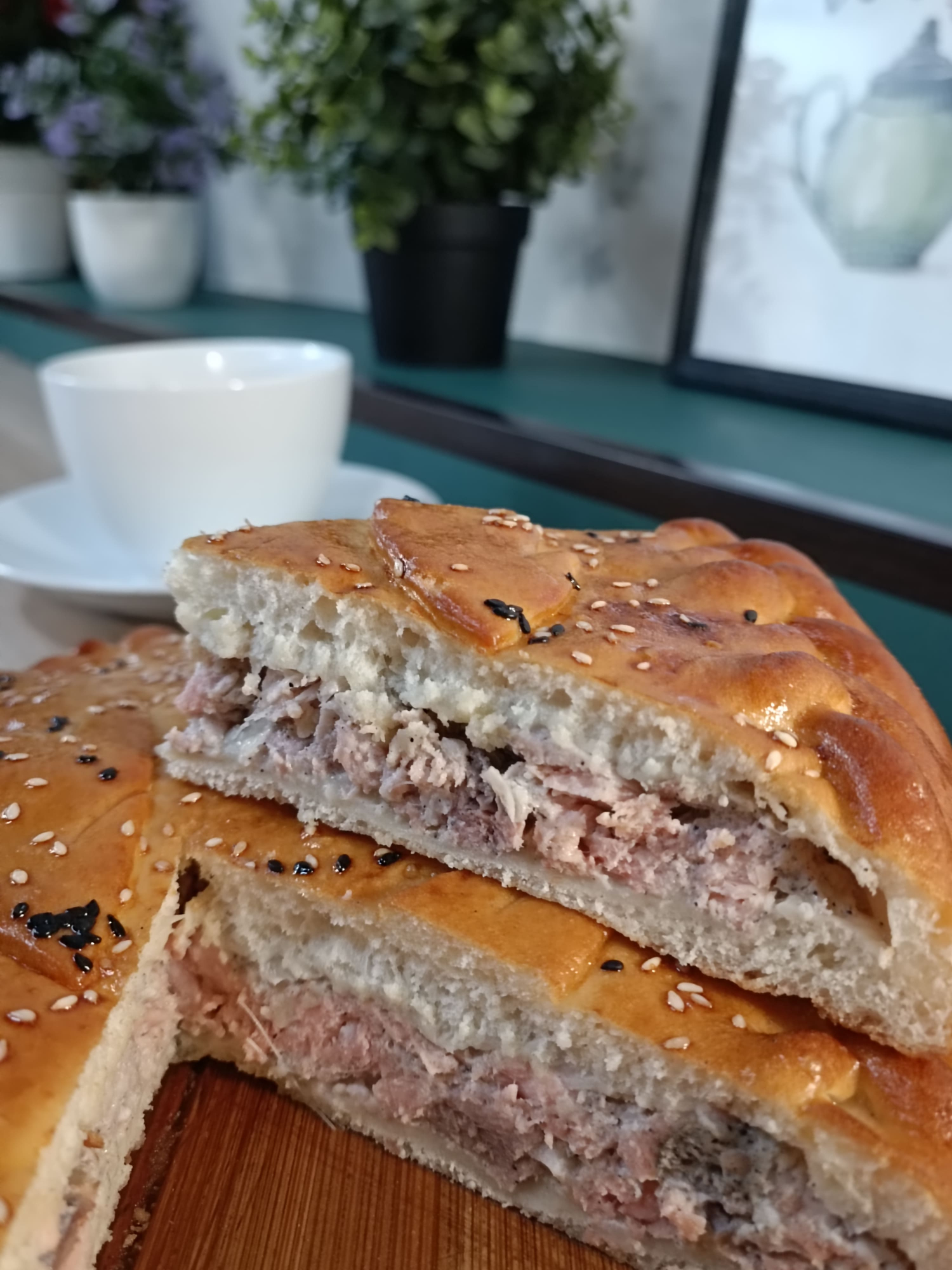 Состав: Тесто дрожжевое, филе горбуши, лук репчатый.