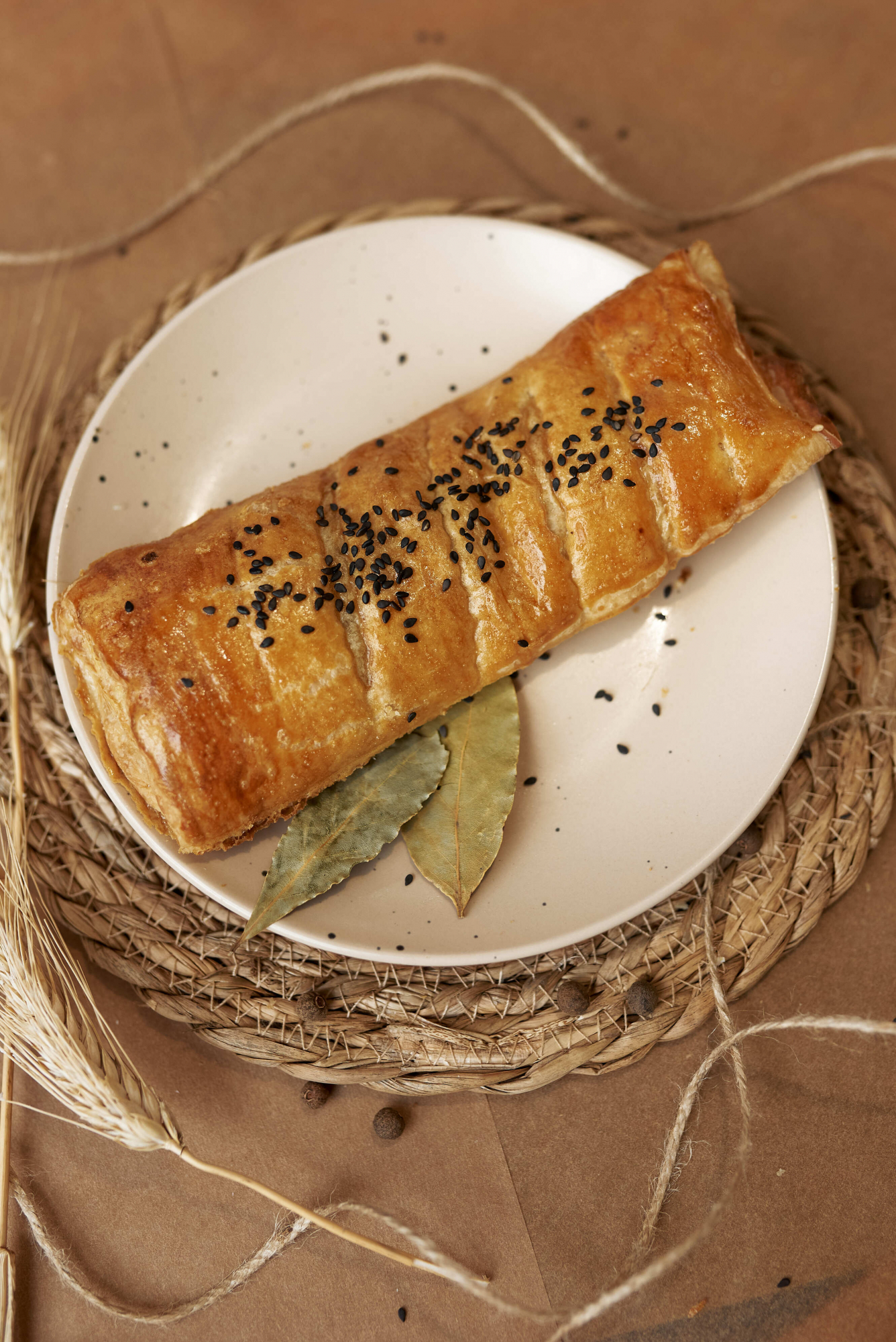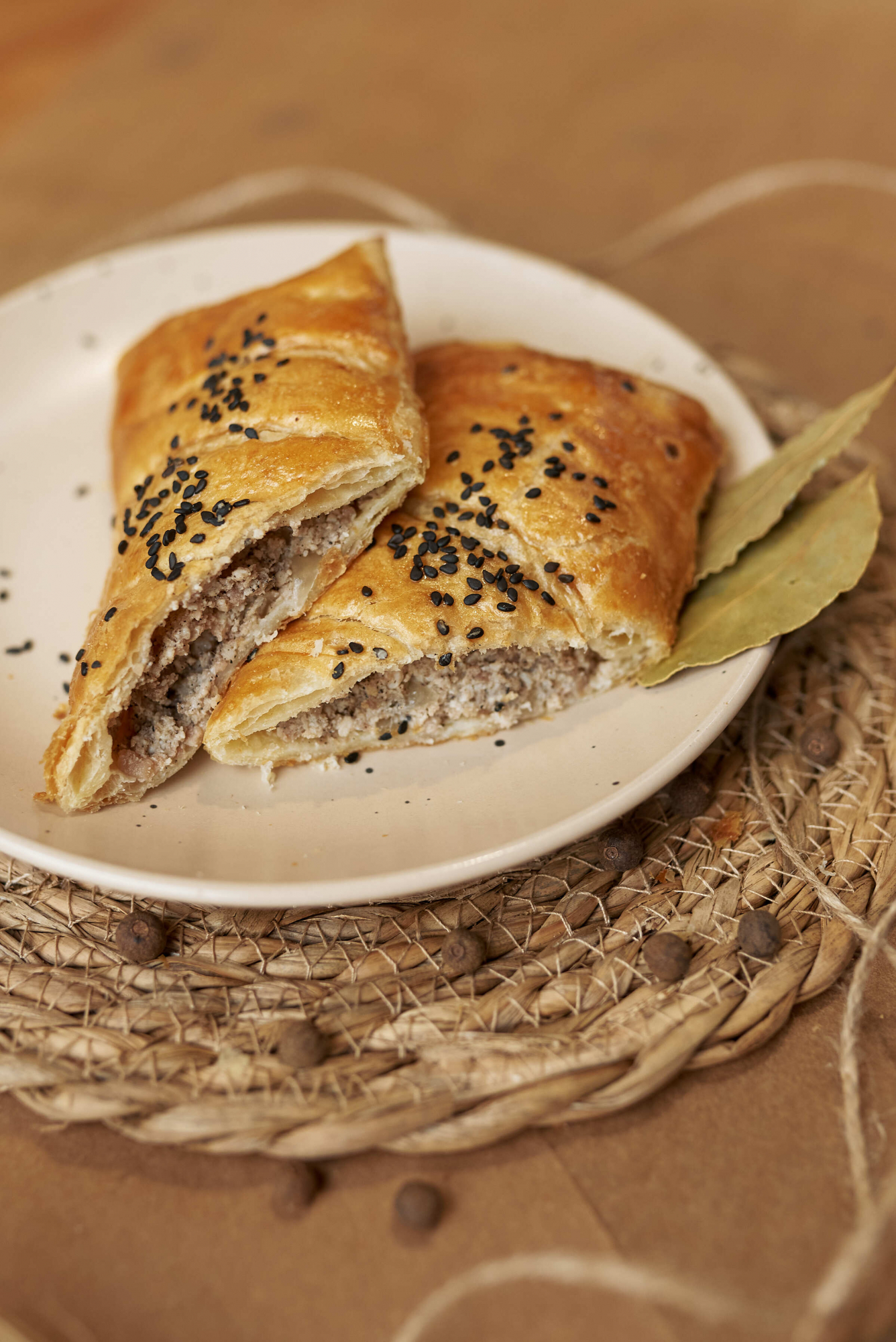 Состав : Тесто слоеное, фарш куриный, лук репчатый.